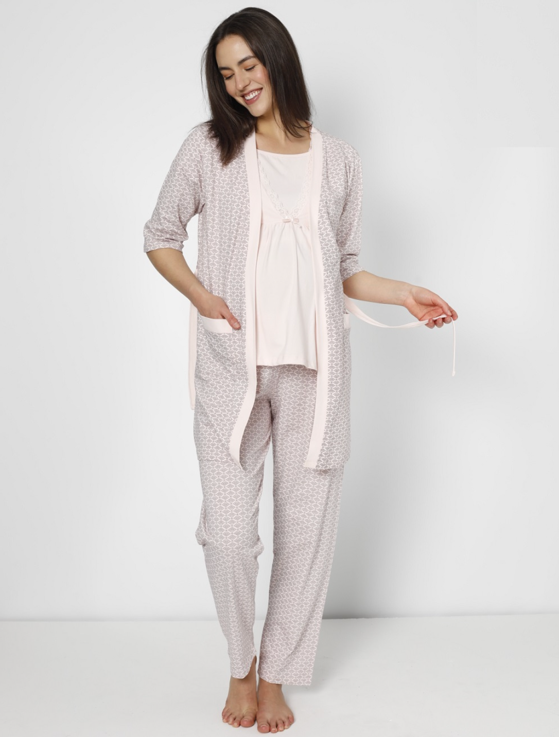 Damen Umstands- und Stillpyjama mit Morgenmantel – 3-teilig