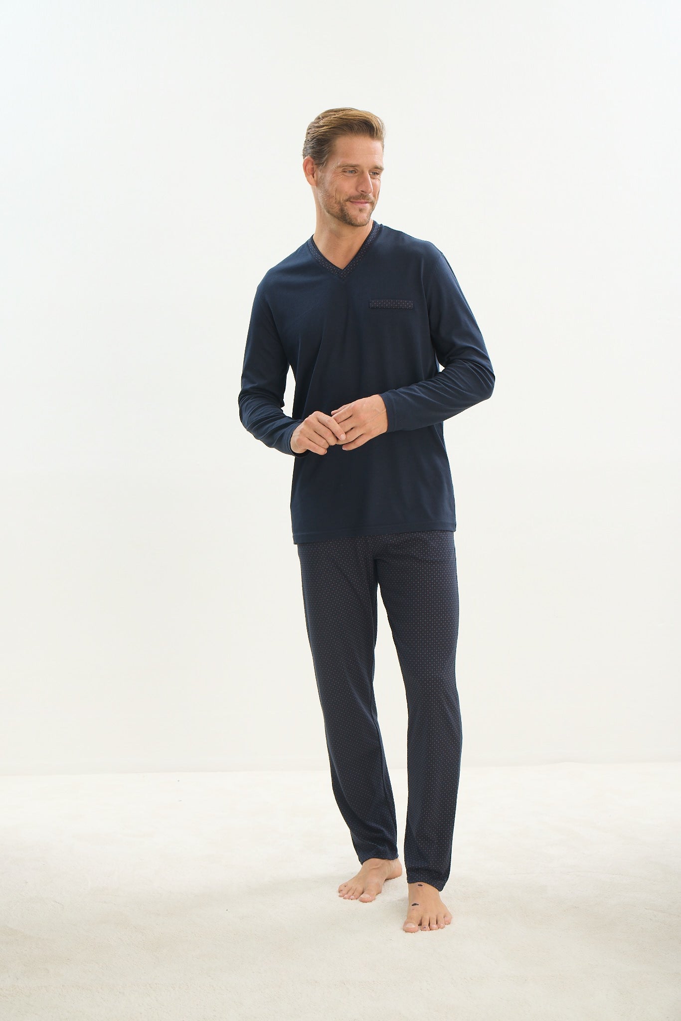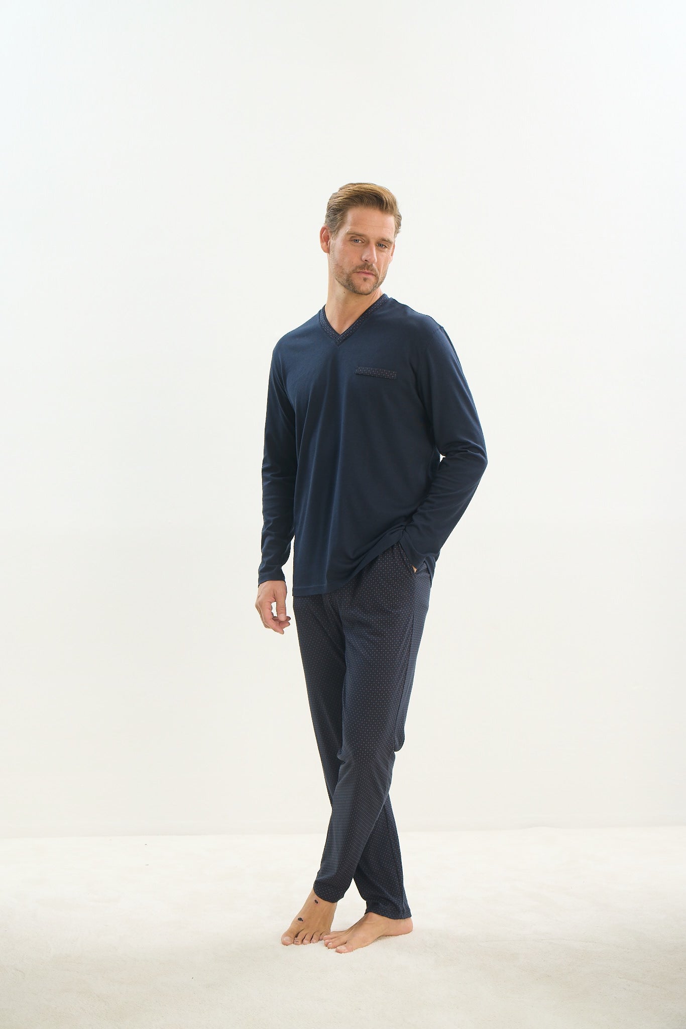 Herren Schlafanzug Pyjama Set lang – 50% Modal 50% Baumwolle