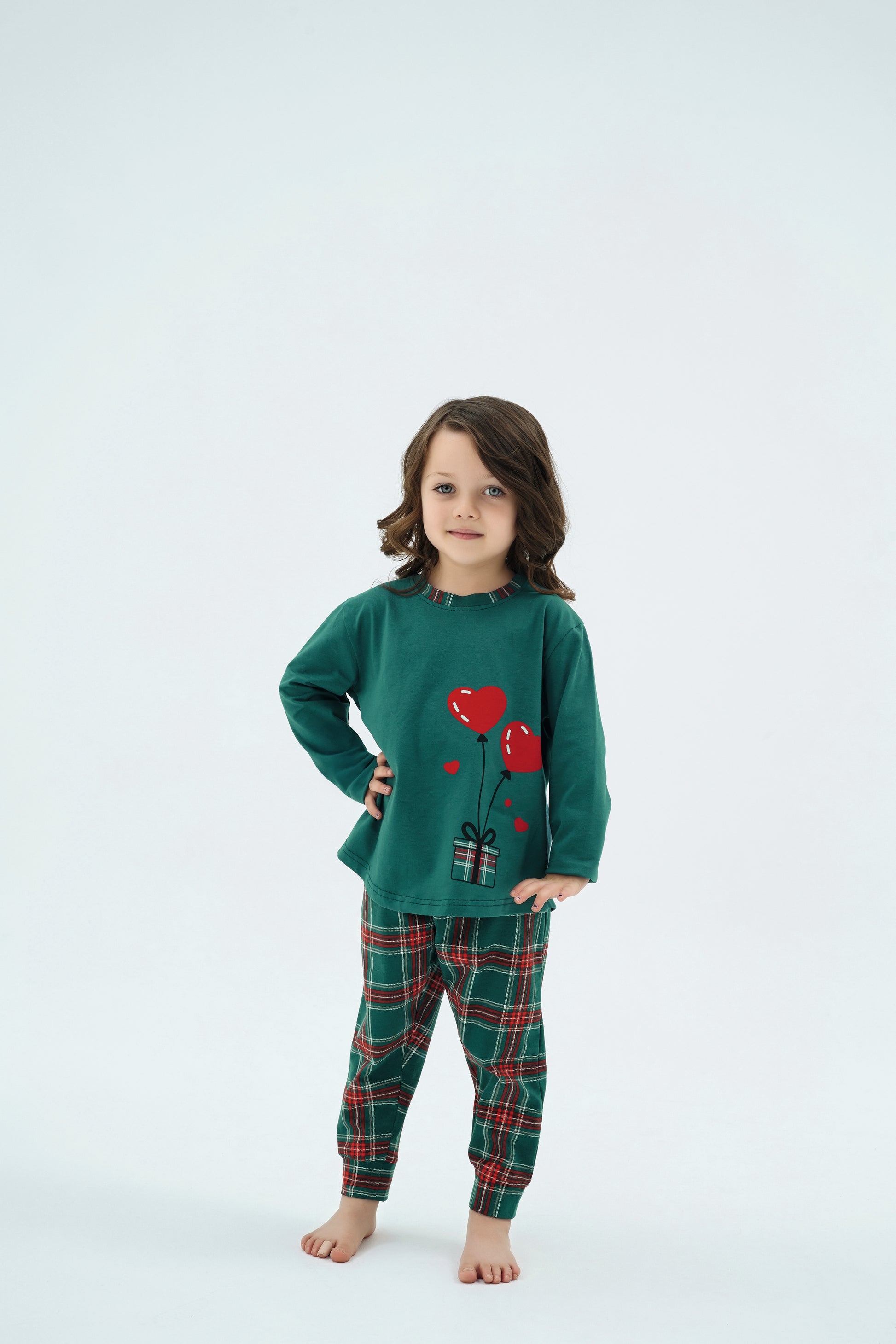 Das Set besteht aus einem grünen Langarm-Oberteil mit Herz-Ballon Motiv und einer karierten Hose mit elastischem Bund. Ideal für Herbst und Winter, sowie als Weihnachts- oder Geburtstagsgeschenk.