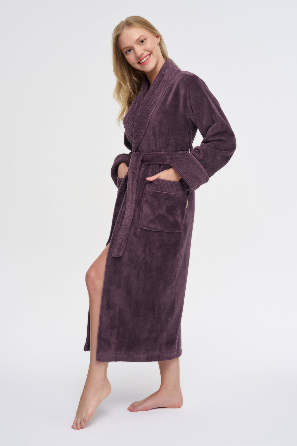 Luxus Damen Frottee-Bademantel mit Gürtel – Baumwolle & Bambus